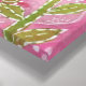 Canvas Print featuring colourful floral artwork, Blooming hollyhock mallows, pink flowers in summer garden. Tissue paper collage, pen sketch, 2019