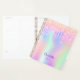 A trendy holographic coloured background with unicorn and rainbow pastel colours in pink, purple mint green. Decorated with faux drips in pink and purple. Personalise and add a name, written with a girly modern hand lettered style script. Add a year. Purple coloured letters.