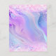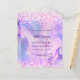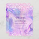 A girly and feminine Quinceañera invitation. On front: A holographic coloured background in purple, pink. Decorated with blush pink confetti. Personalise and add a name and party details. The name is written with a hand lettered style script, purple coloured letters.