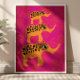 Yellow elephants with Horus-Eye, on the hot pink background. A beautiful bohemian poster to bring colour and joy into your lives.