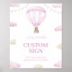 Pink Hot Air Balloon Birthday Custom Table Sign