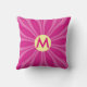 Pink Hot Bright Sunburst Monogram Yellow Circle Cushion