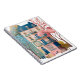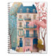A whimsical tall pink duplex with slate blue roof over Hansard windows and wrought iron balcony railings overlooks the tall leafy trees in the park in the back. An eye catching notebook for journal keeping, class notes, story telling and secret keeping, perfect for back to school class.