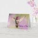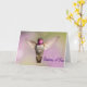 Thinking of you greeting card featuring an anna's hummingbird flying against a purple and green background, with its wings wide open, looking directly at you. You can see the details of his magenta pink throat feathers (gorget). Beautiful card for bird, garden and nature lovers. Photo taken in Arcadia, California.