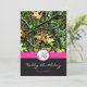 Pink Hunting Camo Birthday Party Invitations - feature a hunting camo like print on the front with a monogram seal over top a vibrant, hot pink band. The front portion showcases various leaves, twigs, bark and other outdoor debris. The bottom portion features a black speckled are to allow text to stand out. The back features the same scheme and design with a peak a boo text box to allow graphics to show through. A swirly heart embellishment at the top of the text box can be moved around or cleared, if you prefer your invitations without it. Just click clear underneath the image in the personalise feature. The paper stock type is set to basic stock. You can also change the card stock to linen, basic, felt and metallic types under option 2 (below the personalise feature to the right of the invite demo). All pink camo birthday invitations come with a white fitted envelope.