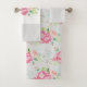 Pink Hydrangea Botanical Pattern on Light Grey Bath Towel Set
