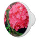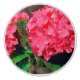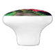 The original photograph by MaeFlowers on this Ceramic Knob is a closeup of pink hydrangeas and their jagged edged spring green leaves. The central pompom of flower petals almost fills the photo, surrounded by the green leaves and bits of other flower pompoms on each side.