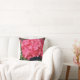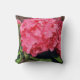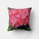 The original photograph by MaeFlowers on this 16” Throw Pillow is a closeup of pink hydrangeas and their jagged edged spring green leaves. The central pompom of flower petals almost fills the photo, surrounded by the green leaves and bits of other flower pompoms on each side.