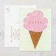 Pink ice cream cone, postcard party invitation. Affordable card for girl's birthday or teen's summer party. Customise with text on the back. Lines provided adding mailing addresses.