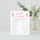 Cute ice cream theme baby shower "guess the price right" game card featuring watercolor illustration of pink and purple ice creams on a waffle cone. The texts are editable. Perfect game to play during the shower. It lists baby essentials and asks guests to guess the price. Whoever guesses the price the closest wins!