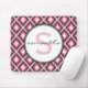 Hot pink and grey tribal diamond ikat pattern with name and monogram.