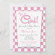 A cute pink It's A Girl girls baby shower invitation featuring a checked pink and white background.