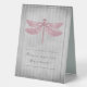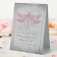 Personalise a unique sign for your guestbook table with a set of Jewelled Dragonfly Wedding Table Tent Sign. Sign design features a vibrant bejeweled dragonfly against a vintage distressed striped background. Additional wedding stationery available with this design as well.