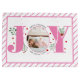 Introducing the Pink Joy with Berries Christmas Photo Holiday Large Gift Bag! This delightful bag features on both the front and the back a vibrant pink frame adorned with the word "JOY" and charming red berries and greenery. But that's not all! Instead of the letter "O," there's a special oval-shaped family photo, capturing the essence of togetherness during the holiday season. Above the photo, you'll find the heartwarming text 'Merry Christmas,' and below it, the family name, making it a truly personalised gift. There also is a lovely striped background behind the frames, made of white and pink stripes. This bag is the perfect way to present your gifts with a touch of love and joy this Christmas! One photo of Photography © Storytree Studios, Stanford, CA