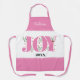 This apron is the perfect choice for adding a festive touch to your Christmas baking! It features a bright pink 'JOY' print surrounded by red berries and green leaves, set against a white background. Pink bands with scalloped edges at the top and bottom provide a beautiful contrast. To make it even more special, you can customise it with your name. Enjoy wearing this joyful apron while making holiday treats!