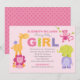 Pink Jungle Animals Baby Girl Shower Invitation