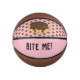 Pink kawaii cute chocolate doughnut rainbow sprinkles mini basketball - Fun and cute mini basketball with a delicious kawaii chocolate doughnut covered with rainbow sprinkles. Custom text BITE ME on a pink background that can be changed to anything you like. Cutest face on this sweet dessert.