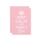 Customisable text areas on a pink and white "Keep Calm and Party On" parody for a birthday party.