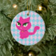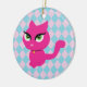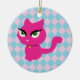 This cute cat design features an illustration of an adorable pink kitty cat who is just a little bit peeved but she's still so cute with her large green eyes and little collar!