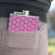 A seamless pattern fills the frame with a complex interplay of pink tones. The repetitive geometric motif creates an almost floral impression, which is visually hypnotic and detailed.