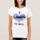 Show how much you love the beach with this I "heart" the beach shirt. with a heart shaped landscape of the beach called "Pink Lady" painted by Patty Gentile. This sea shore landscape shows a sky with a hint of pink in some small clouds over the ocean of dark blue and a sailboat sailing to shore. The waves crash on the shore with a lighthouse in the distance. On the shore awaits "The Pink Lady". In her ruffled pink dress blowing in the wind and her hand on her hat to keep it from blowing away. She waits for the boat. A reflection of the pink sky upon the sand. Showing bits of sea grass and sand dunes a small path leading to this heartfelt arrival of whomever "The Pink Lady" awaits for. If you have a love for seashore landscapes you will fall in love with this one.