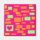 Pink with pale orange blocks and lime green small and big