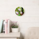I needed a clock for my bathroom. Yes, my bathroom. So that it would "fit" and look right in the space, I needed something that was frameless, and contemporary. This clock has the water/nature/serene look I wanted. It looks great on my bathroom wall! The blue is well suited to resemble water and the beige matches the vanity. I decided to customize it with inspirational words....perfect! This was my first order, and now, I will certainly come back for future purchases. Very nice, the printing is beautiful and I'm pleased with it.