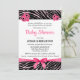 Pink Ladybug Zebra Stripes Baby Shower Invitation