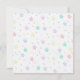Sweet Pink lamb baby shower invitations. The background is pink, blue, green, and yellow stars with a pink lamb standing behind a fence.