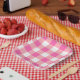 Modern pink gingham party products. Pink gingham party decorations and supplies.