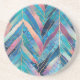 Pink Leaf And Mermaid Scales Pattern Coaster