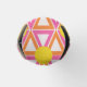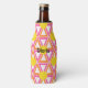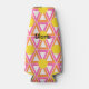 This bottle cooler has a geometric design of repeating pink and orange triangles with yellow circles on top on a field of off-white. Want the same design in different colours? Message me.