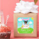 This cute and whimsical sticker features a black hair girl with dark skin at a pink lemonade stand which is decorated with flowers and bunting. In the background is a blue sky, sunshine and butterflies. The text combines decorative and sans serif fonts for a stylish and modern look. This is perfect for a summer birthday party.