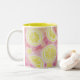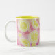 Fruity, fizzy, sweet and sour... slices of lemon, bubbles and stars float in pink lemonade. Mug with a pink, yellow, orange and white customisable design for you to personalise with your own text, images and ideas. An original coloured pencil and white ink drawing by Jess Perry.