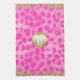 Pink Leopard Cheetah Print Gold Glitter Monogram Tea Towel