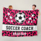 Pink Leopard Print Soccer Coach Name Fleece Blanket