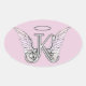 Pink Letter K Angel Wings Monogram Oval Sticker