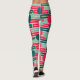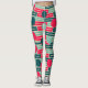 These leggings have a mid-century modern design of repeating rectangles in pink, teal, and blue with circles layered on top.