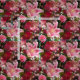 This pretty fabric features a painted design of red roses with pink lilies and aster flowers interspersed.