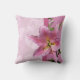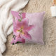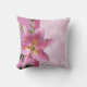 This pretty pastel pink, green, and mauve throw pillow has pink and yellow Stargazer lily flowers on it.