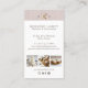Showcase your bakery or home baking business with style using this Elegant Chic Bakery Photo Business Card Template by ©Moodthology Papery. The front features a faux blush pink linen texture background with a playful scalloped photo frame—perfect for your business portrait. A refined gold whisk and pink rolling pin graphic, along with your personalized monogram, add a touch of sophistication. Easily customize with your business name and tagline. The reverse side displays your contact details in a clean, modern layout and includes space for three additional photos to highlight your delicious creations. Ideal for home bakers, bakeries, cafés, or restaurants looking to make a memorable, professional impression.