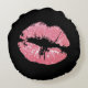 Pink Lips on Black Background Round Pillow