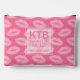 Add your initials and short two line text eg Makeup Artist to this cute cosmetic accessory pouch with pink lipstick pattern design.