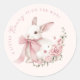 These Little Bunny stickers feature soft watercolor florals, a sweet bunny illustration, and romantic pink bow details.