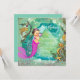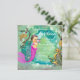 Mermaid birthday party invitation with adorable pink little mermaid with diamond tiara and pearl on a beautiful green, pink, teal blue and gold sparkle undersea background. This beautiful mermaid birthday party invitation is easily customised for your event by simply adding your details in the font style and colour and wording of your choice. this is a printed design with no real jewels, bows, glitter, etc.