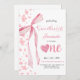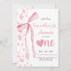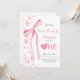 Little Sweetheart Valentine Birthday Invitation featuring a watercolor PINK bow and heart accents.