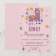 Pink llama Fun Girl First Birthday Party Invitation