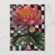 Pink Lotus Flower Black White Chequered Background Postcard