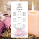Create a peaceful first impression with the pretty Pink Lotus Flower Spa and Salon Service Menu Flyer, featuring a digitally enhanced floral photograph of a soft pink lotus blossom on a clean white background. The tranquil flowery design evokes calmness and balance—an ideal match for natural wellness brands, massage therapists, estheticians, reiki and Ayurveda practitioners and holistic beauty professionals. Fully customizable, this flyer template allows you to add your own service offerings, prices and contact information using Zazzle’s easy editing tools. Update text, adjust font styles and include your logo to reflect your unique brand identity. Use it to display massage therapies, facial treatments, hair or nail care, waxing, aromatherapy and other spa services. Printed on premium paper, this elegant flyer also works beautifully as an in-spa handout, price menu display or promotional insert. Designed with mindfulness and professionalism in mind, this Pink Lotus Price List Template helps you convey both your brand’s aesthetic and your care for client experience. Create yours today and share your services in serene, stylish detail.