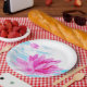 Pink Lotus Flower Watercolor Painting Paper Plate